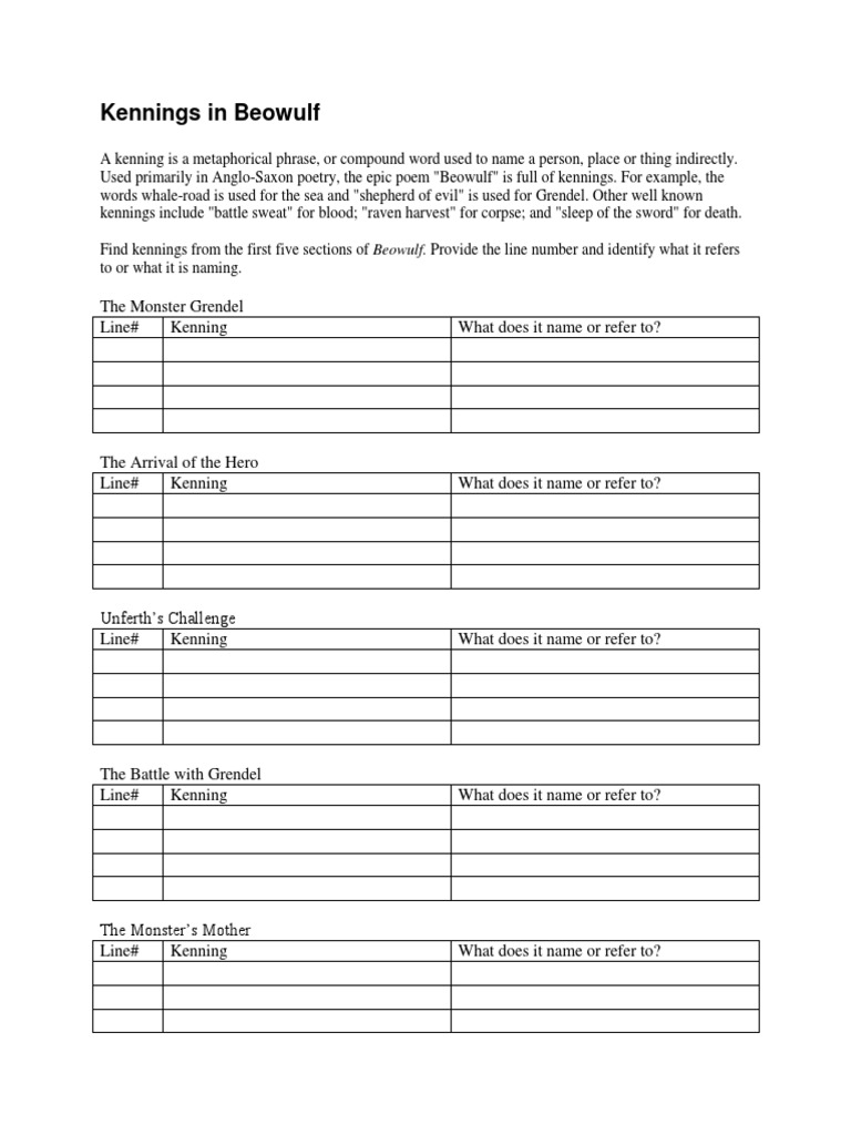 Activity For Beowulf Kennings By Christine S Modest English Tpt